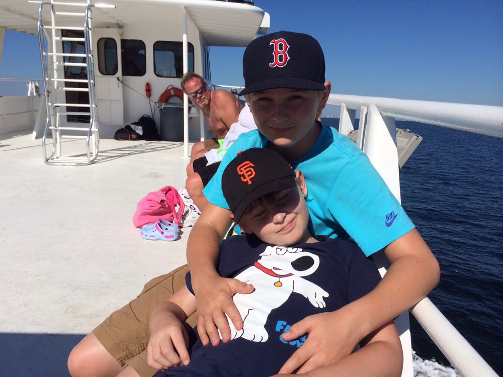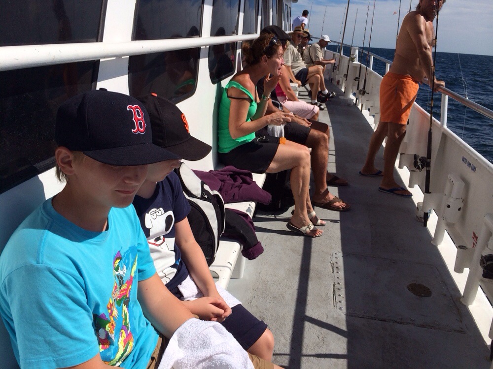 Vi satte väckarklockan på tidigt! Kl 0930 avgick båten som skulle ta oss ut i Mexikanska Golfen. Båten var välutrustad med kök/resturang så att Xander kunde få sin hamburgare med bara ketchup ;-), han var nöjd. Efter 1 1/2 tim så fick vi släppa ner krokarna. Christopher fick första fisken så klart, (en Bluerunner) vilken tydligen inte var ätlig så den fick bli delfinmat. Sedan fick vi fisk i löpande band alla fick fisk även pappa (moi) totalt fick vi 16 fiskar, några fick vi kasta i igen för de var inte stora nog :-(!
